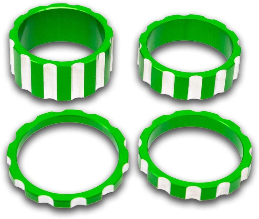 Awesome 12 point Headset spacer 4 piece kit comes with 3mm, 5mm, 10mm and 15mm spacers. Made from Billet Aluminum, anodized then re machined 12 points. They look great stacked under your stem and match our 12 point stem cap